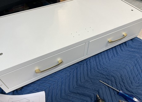 ※完成した棚のお写真はガラス張りでお部屋が映り込んでしまうため